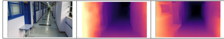 + 추가적으로 이에 10개의 데이터셋(ReDWeb, DIML, MegaDepth 등) 에 대해 학습된 MiDaSv2 모델(midas_v21_small)[6] 로 대체하였으며 더욱 선명한 depth map을 얻었다. 아래 그림은 순서대로 원본, monodepth2, midas 의 경우이다.