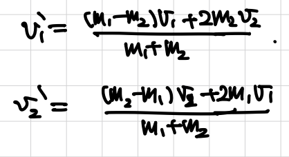 가 성립하고, 연립방정식을 풀어주면 v1', v2' 을 다음과 같이 구할 수 있다.