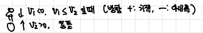 공을 던지고 점프하고 어느 순간에 충돌한다고 했으니, 충돌 직전 사람은 v1 < 0 으로 내려오고 있고, 공은 v2 > 0 로 올라오고 있다고 가정해보자. v1은 음수고 v2는 양수이니 당연히 충돌한다.